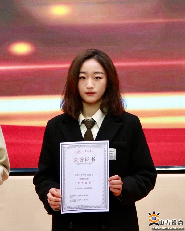 王鲁云,山东大学能源与动力工程学院2019级能源与环境系统工程学生。曾任学院青年志愿者联合会部长,现任班级副班长。曾获得“山东大学优秀共青团员”“2020级迎新志愿服务先进个人”“2020-2021年度暑期校级社会实践先进个人”等荣誉称号,曾获得“山东大学第十二届大学生节能减排社会实践与科技竞赛校级一等奖”“2020年山东大学学生辩论协会‘节外生枝’杯辩论赛冠军”“2021年第二届‘花鸡杯’网络辩论赛二等奖”“2020年美育素养类特长奖学金一等奖”等荣誉。
