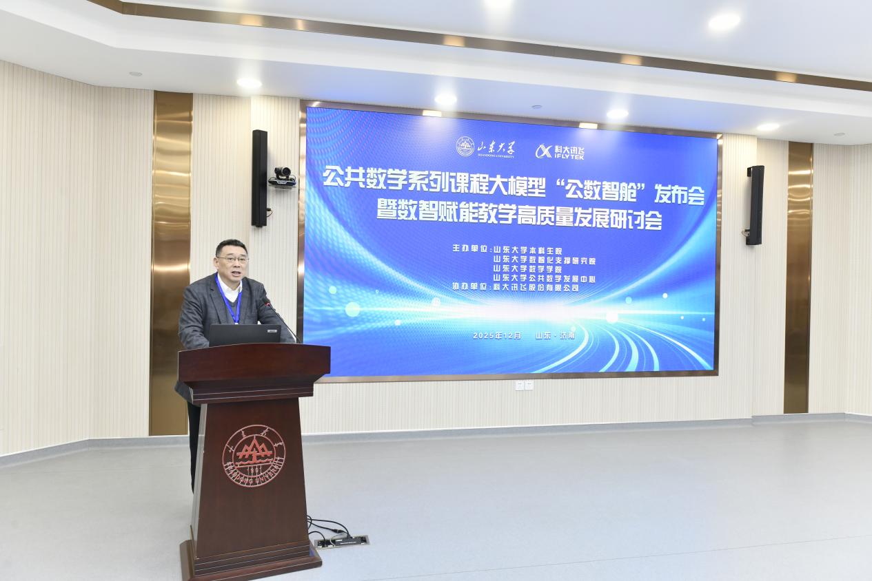2025年12月9日,山东大学“公数智舱”公共数学课程群大模型发布会暨数智赋能教学高质量发展研讨会顺利举行。山东大学常务副校长吴臻出席开幕式并讲话。